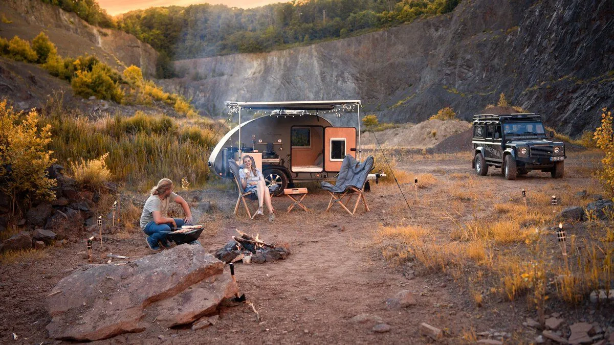 “Teardrop”-caravan – wat is dat eigenlijk? Een Teardrop-caravan is over het algemeen een kleine, aerodynamische caravan die zijn naam dankt aan de druppelvormige (Engels: “teardrop”) vorm. De oorsprong van de Teardrop-caravans gaat terug tot de jaren 1930, toen ze in de VS door buitenliefhebbers als doe-het-zelf-projecten werden gebouwd. Het ontwerp zorgt voor een enorme torsiestijfheid van de opbouw. De rijwind kan bovendien over de afgevlakte achterkant zonder luchtwervelingen stroomafwaarts bewegen. Hierdoor liggen de caravans tijdens het rijden extreem stabiel op de weg, bieden ze nauwelijks luchtweerstand en zorgen ze voor een goede actieradius, zelfs met een elektrische auto. MINIATOURING voegt hier een extra dimensie aan toe door gebruik te maken van een unieke combinatie van duurzame materialen in de constructie; aluminium en hout. Dit verhoogt de stijfheid van het chassis nog verder, waardoor alle MINIATOURING-modellen echte all-terrain caravans zijn. Bovendien zorgt het interieur van hout voor een authentieke, natuurlijke beleving.